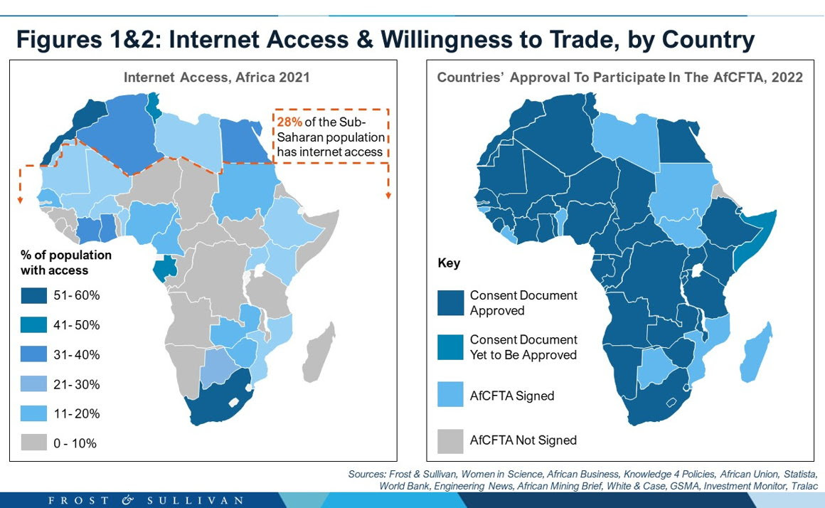 Sources: Frost & Sullivan, Women in Science, African Business, Knowledge 4 Policies, African Union, Statista, World Bank, Engineering News, African Mining Brief, White & Case, GSMA, Investment Monitor, Tralac