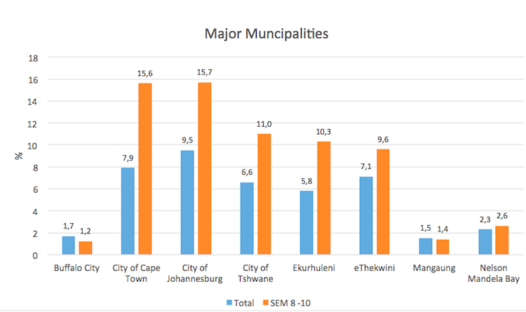 More specifically, they show a distinct preference for certain major municipalities: the cities of Cape Town, Johannesburg and Tshwane as well as Ekurhuleni and eThekwini.