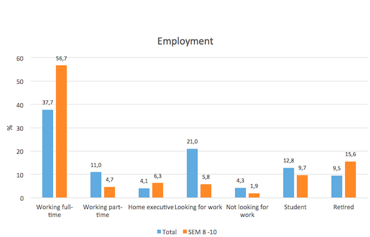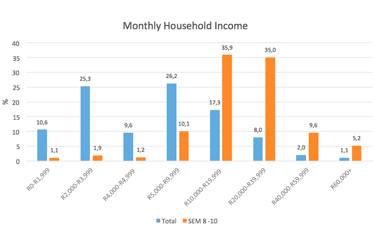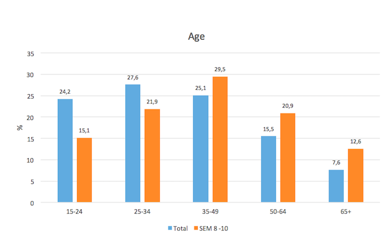 Of course, it is the other end of the population scale that receive the most attention from marketers. It is the members of the SEM 8-10 group, who earn the most money, consume the most media and enjoy the best standard of living. They constitute 19.3% of the 15+ population, which equates to 7 601 000 people.
