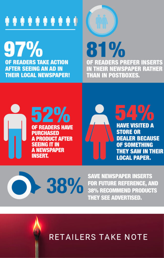 - 52% of readers purchase products advertised in newspaper inserts