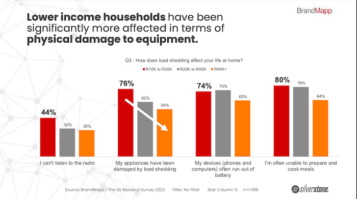 BrandMapp, the country’s leading consumer insights researcher into middle to top income South African consumers, has joined forces with SilverstoneCIS to conduct a unique survey into the impacts of rolling blackout on the country’s taxpaying base. The online study targeted respondents living in households with R10k+ income, those most able to mitigate the many debilitating impacts of Eskom’s load shedding, and the first-ever SA Blackout Report was released in March 2023.