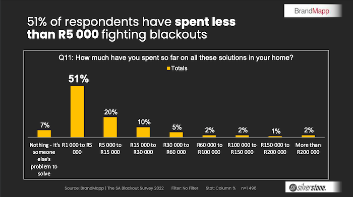 Almost 90% of respondents said they are still planning to spend more of their hard earned cash on power solutions and around half of them say they can invest more than R15 000 to fight black outs.