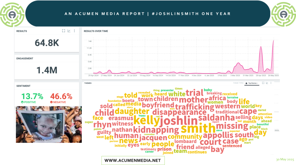 Fifteen months I’ve been watching Judge Erasmus and wishing he was my president, because, you see, when you truly, truly care for your children only good things follow. Fifteen months Joshlin has been missing, and God knows what that little girl has endured to date. We pray for you Ma se kind. We love you our poster girl of shame.